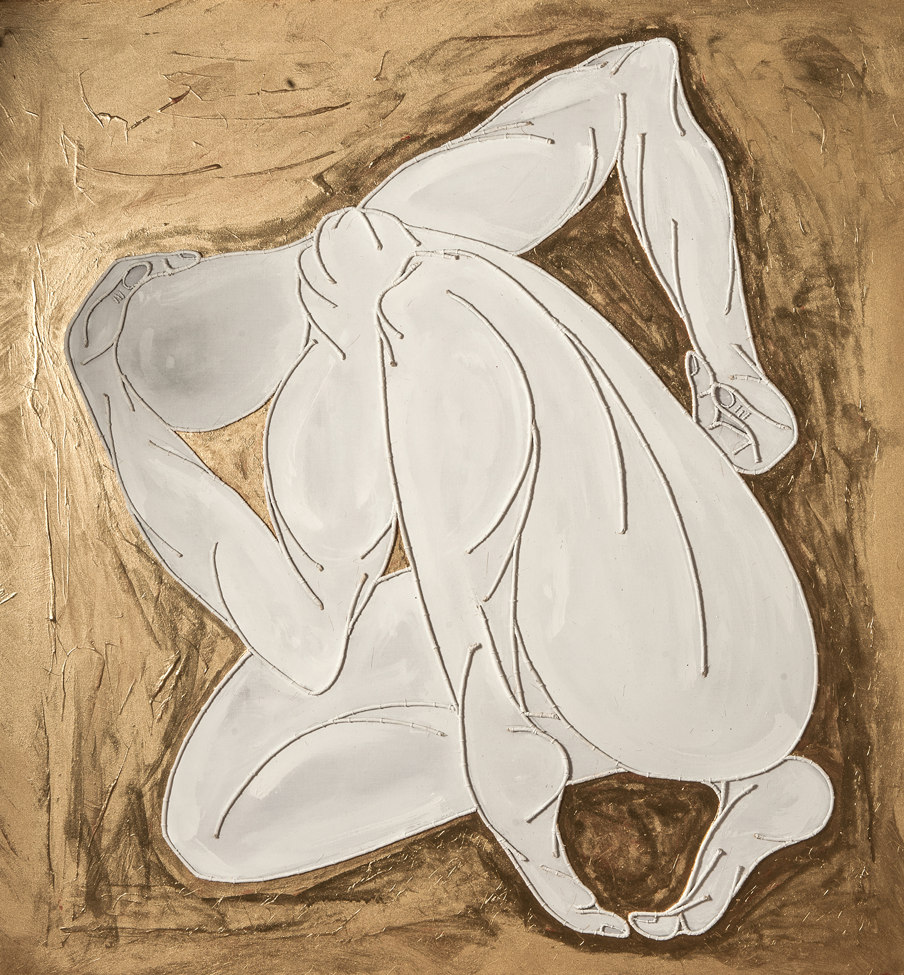 tempera da muro,alluminio dorato,matita,