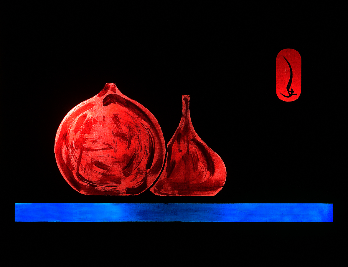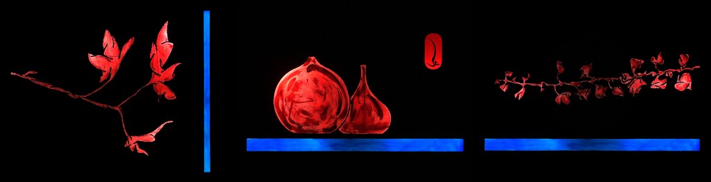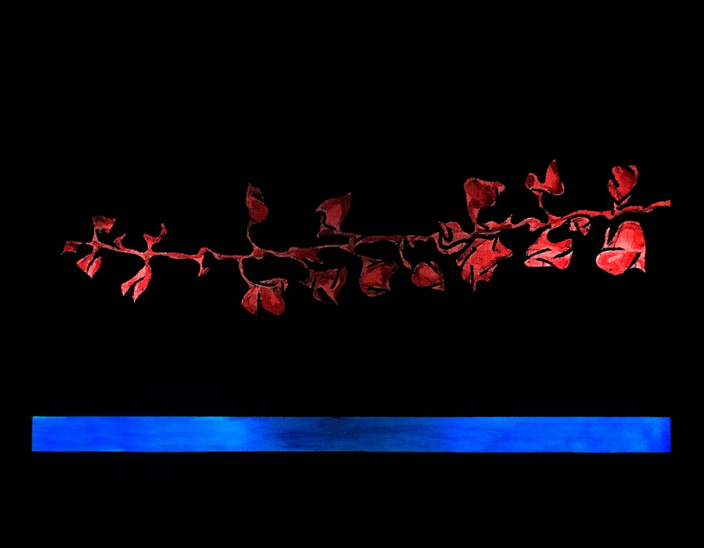 tempera da muro,carminio e blu da vetro,timbro-cartiglio di Isse,corda cucita su tela di misto cotone