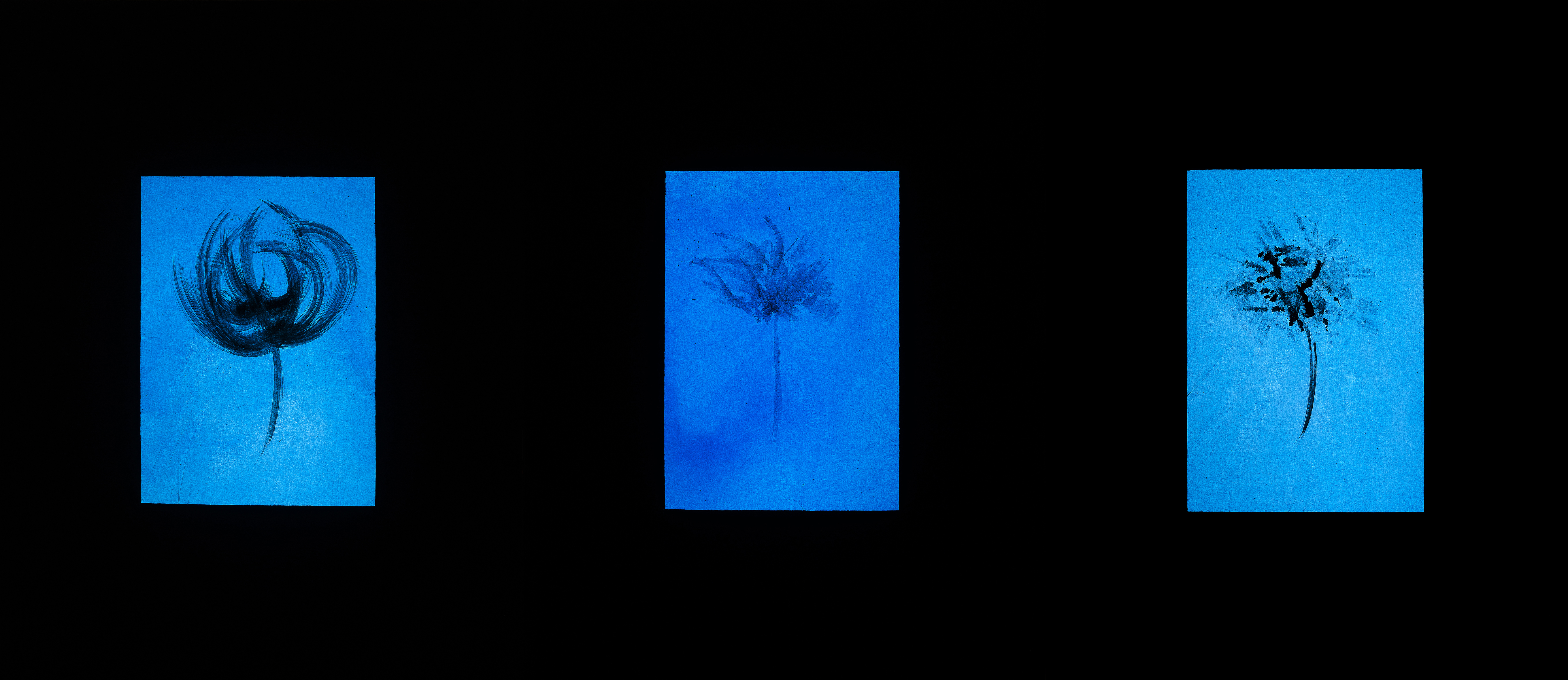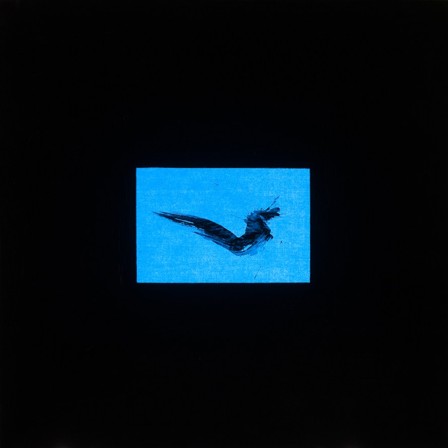 tempera da muro,carta velina,carboncino,nastro carta,blu da vetro,vernice lucida finale;