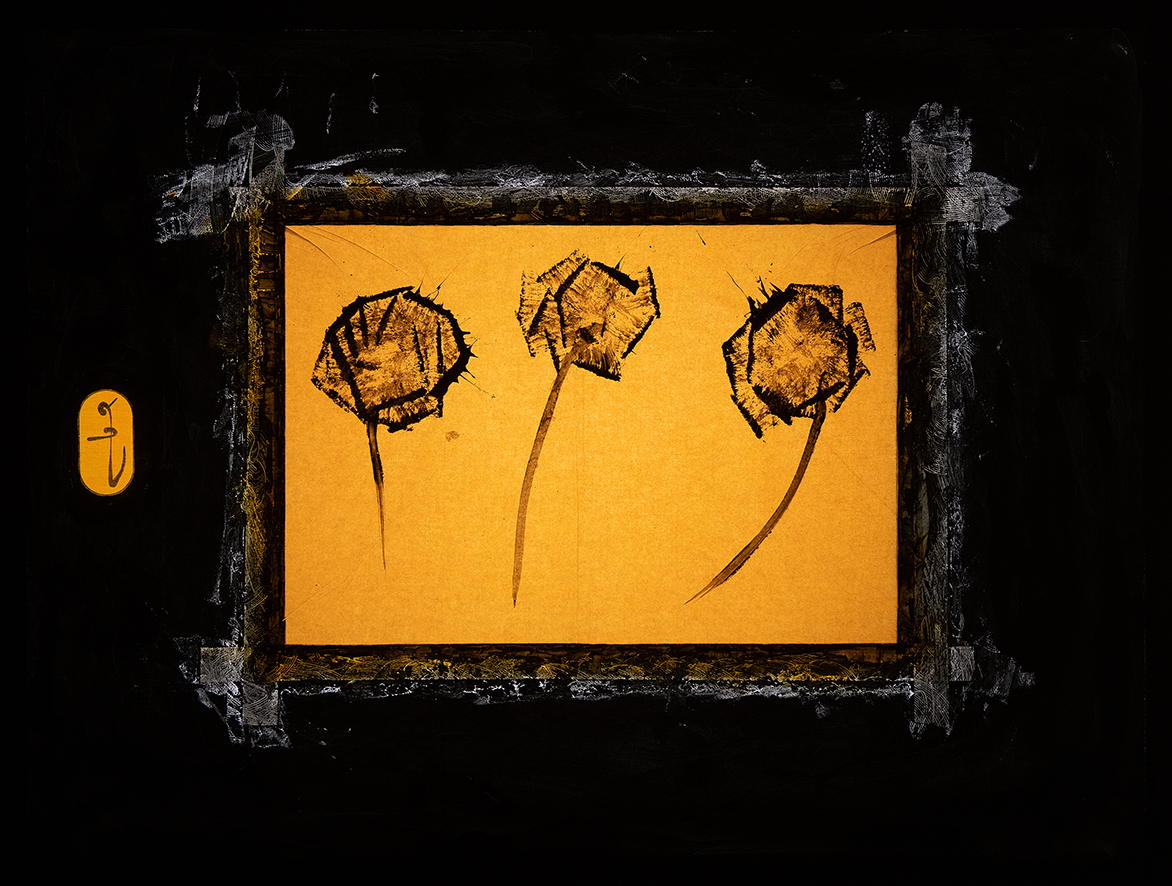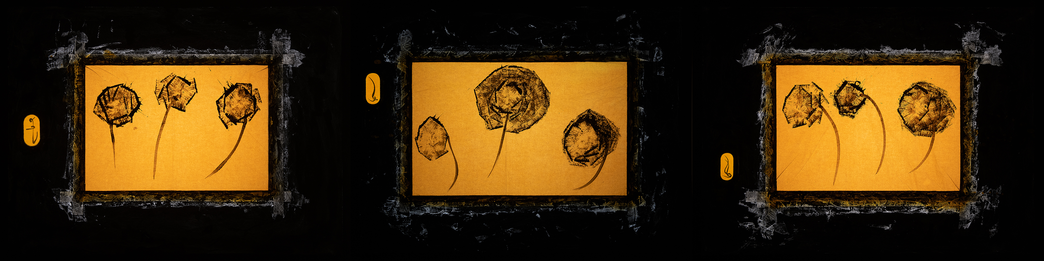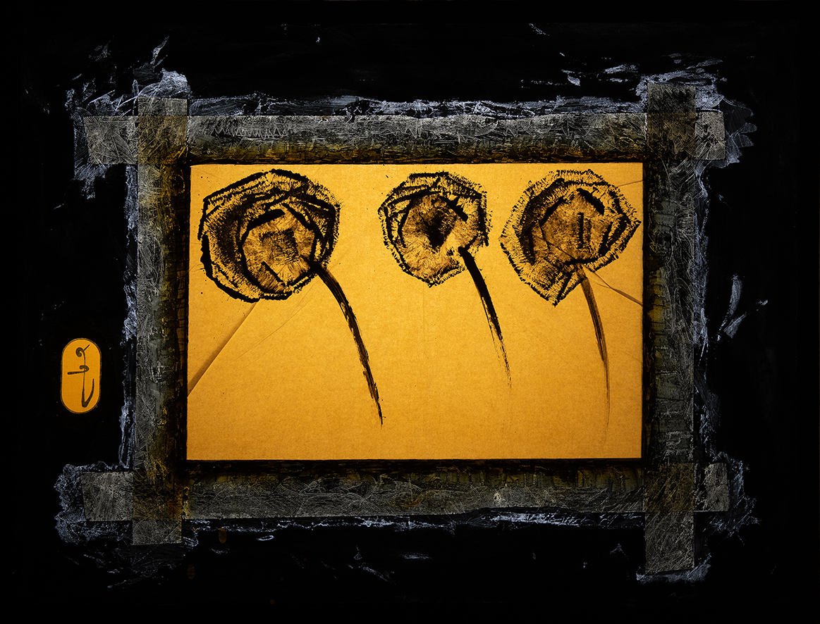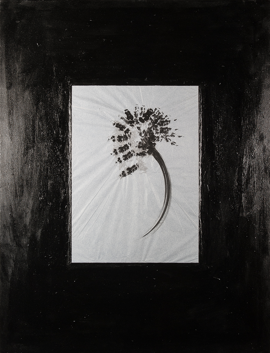 tempera nera da muro,acrilico ranciato,matita nera,nastro carta,vernice lucida finale,carta velina