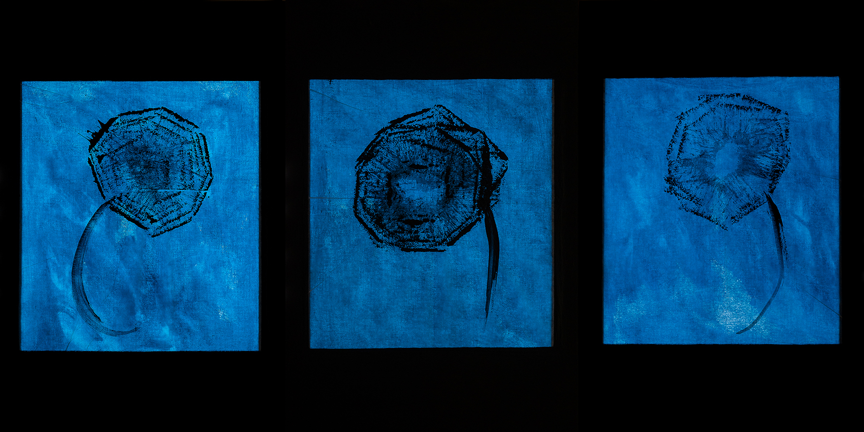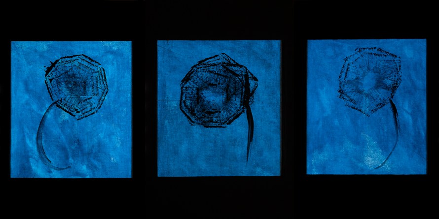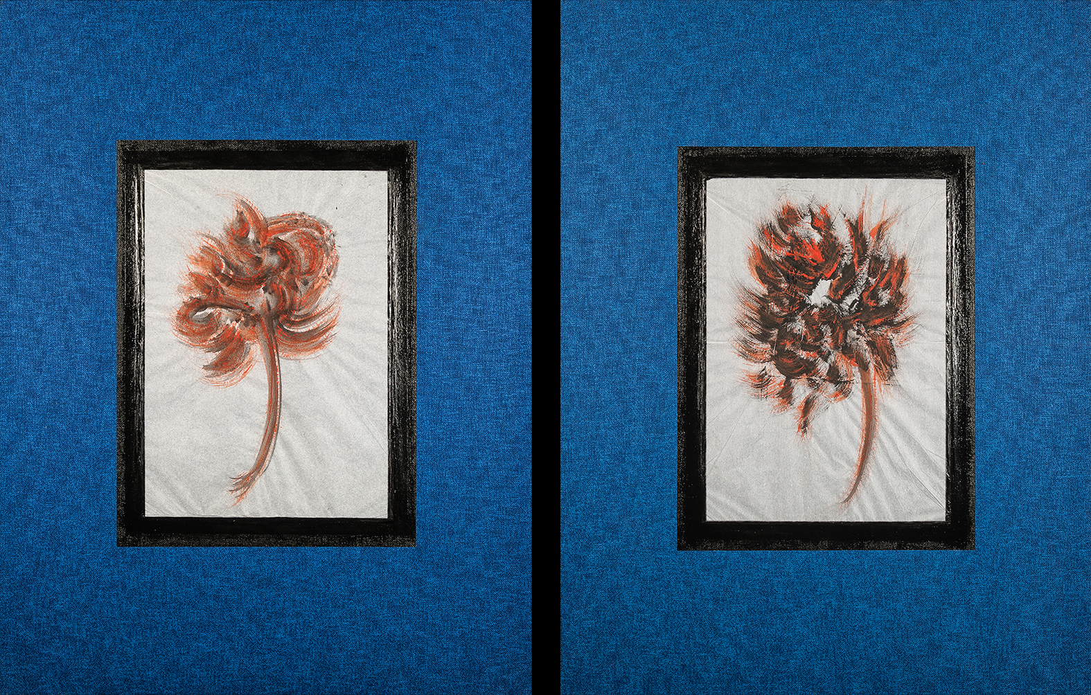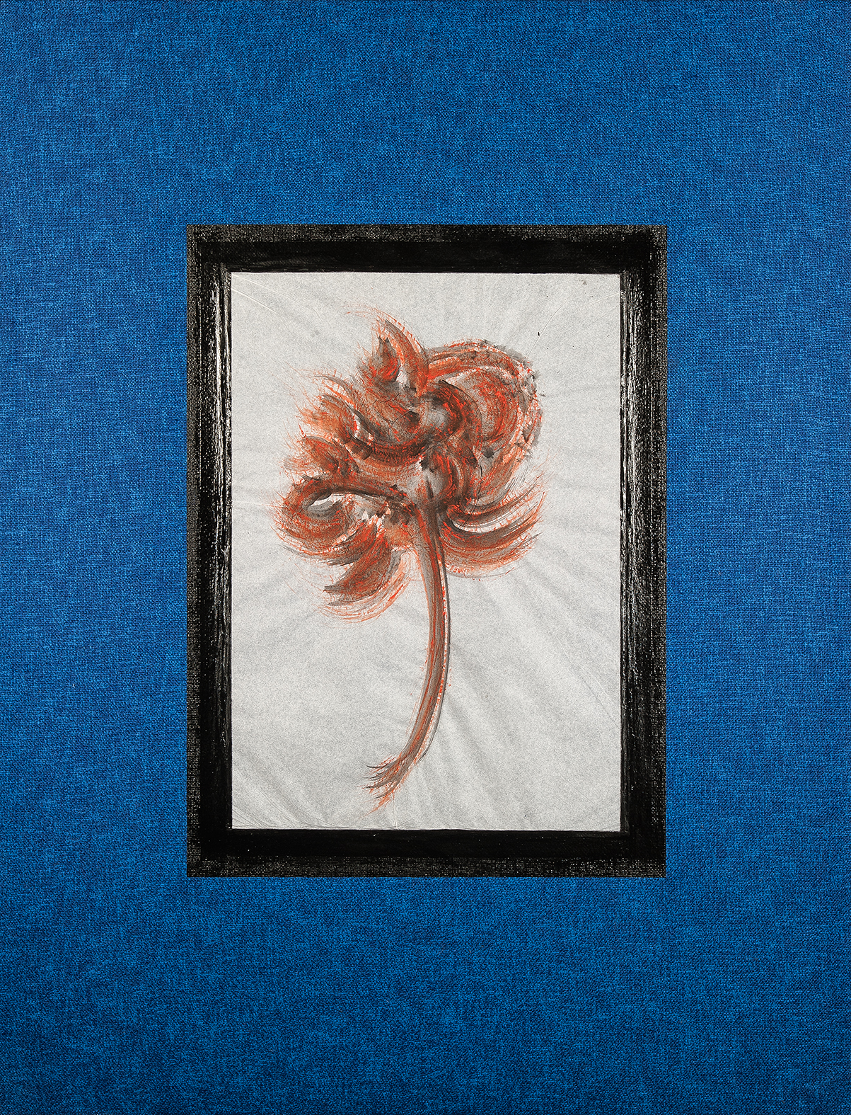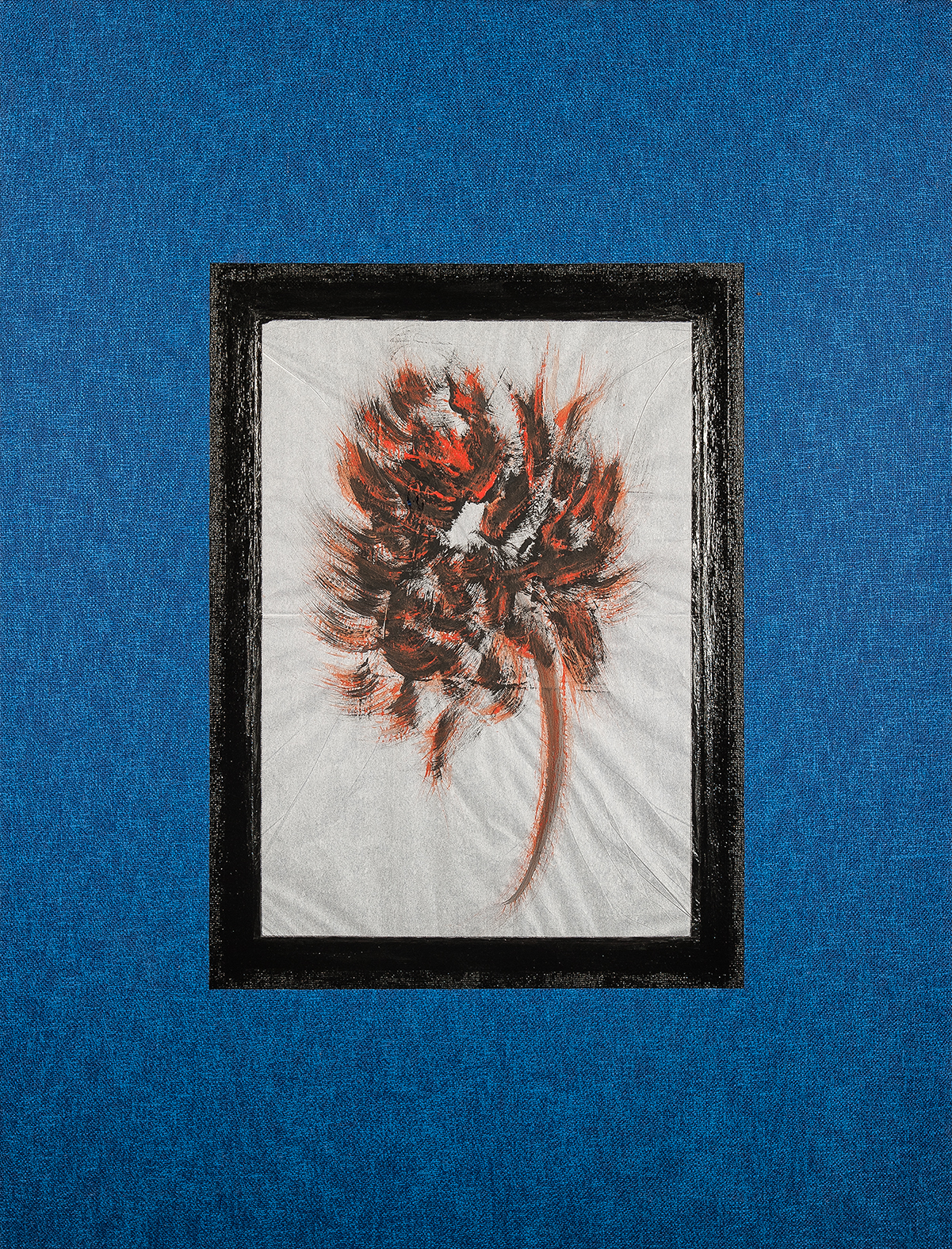 tempera da muro,carta velina,carboncino,nastro carta,blu da vetro su misto cotone