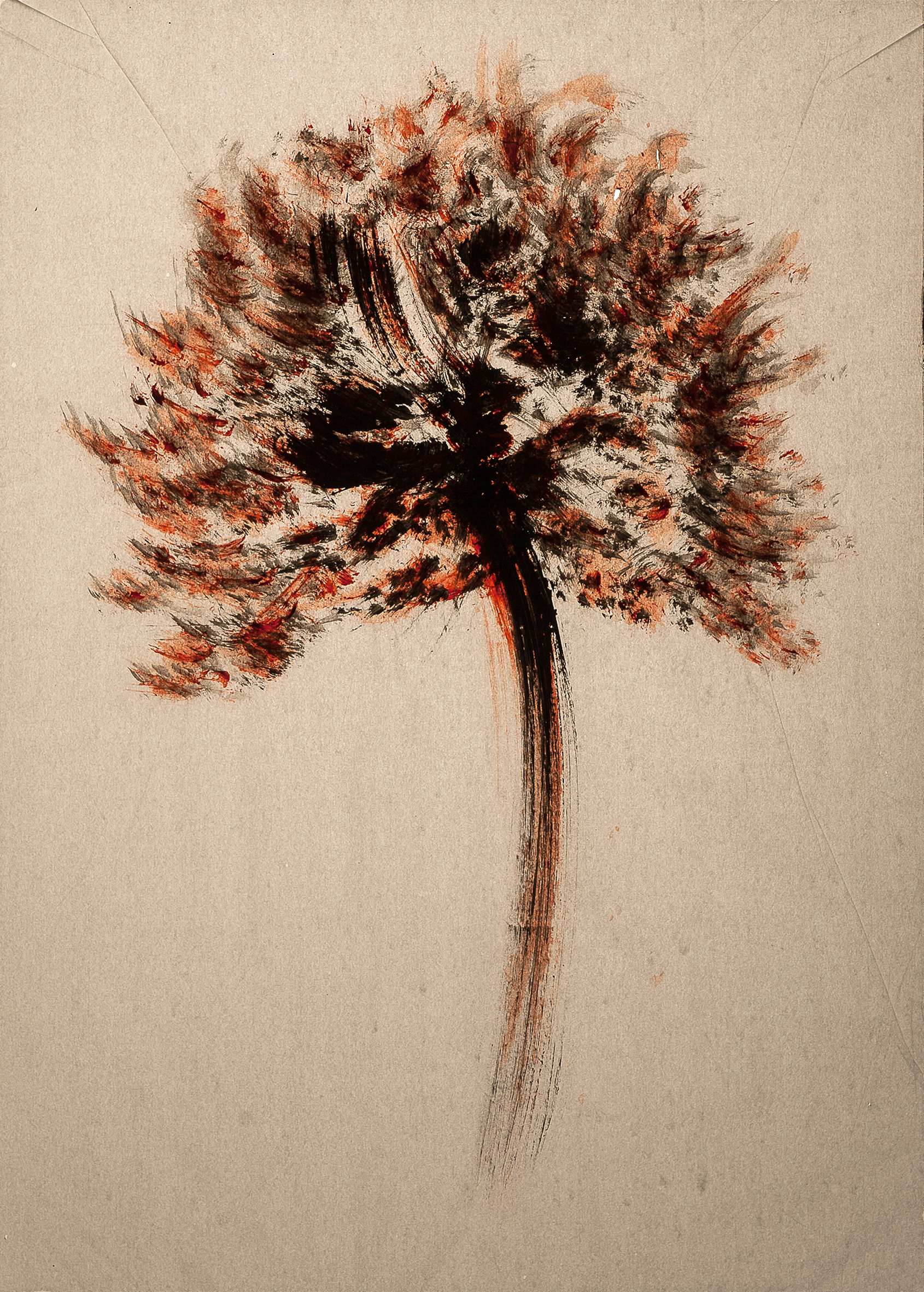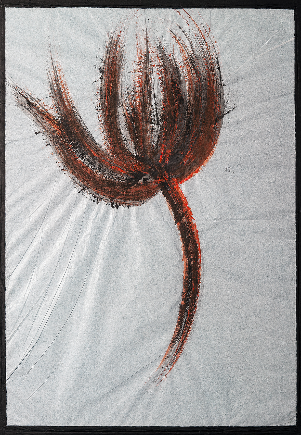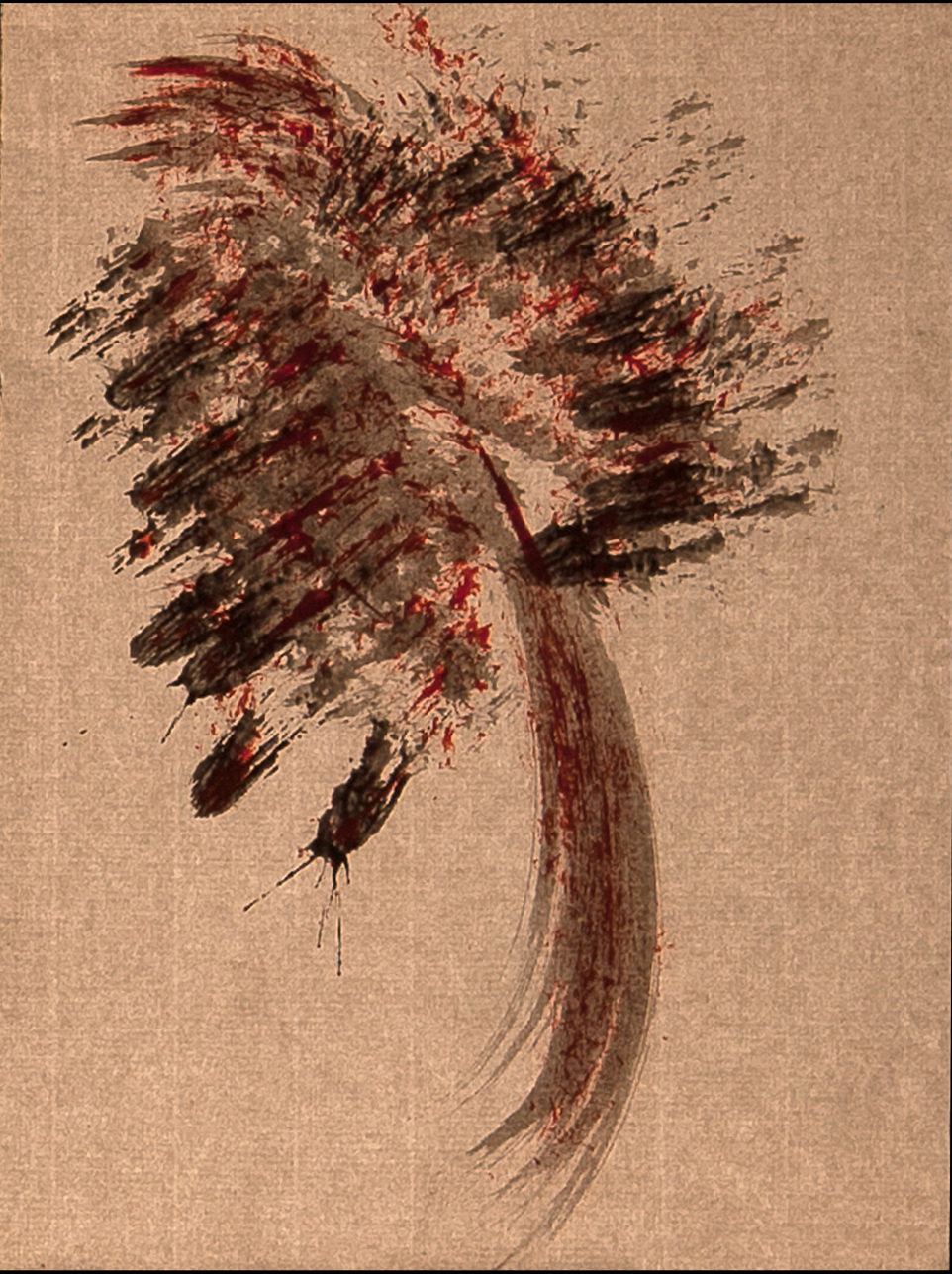 tempera nera da muro su foglio A4 di carta velina invecchiata,