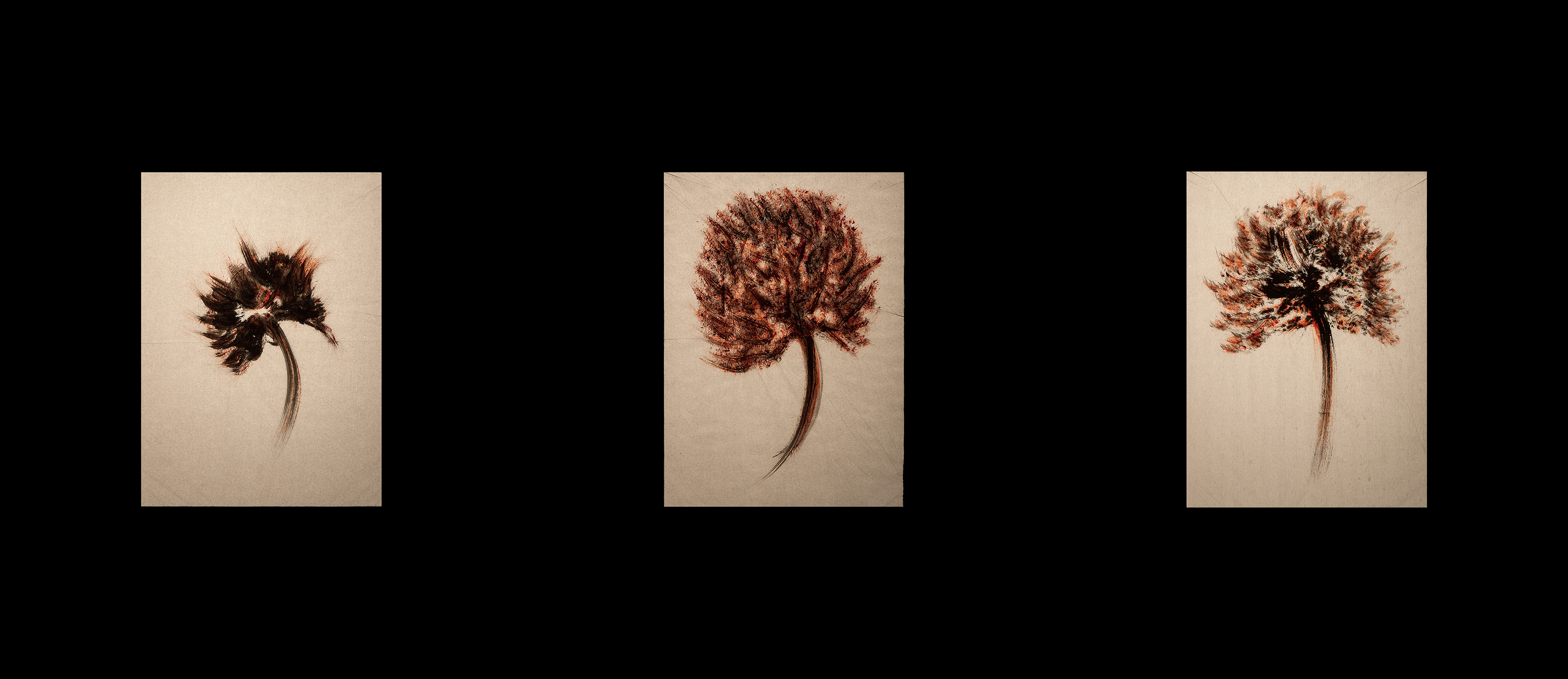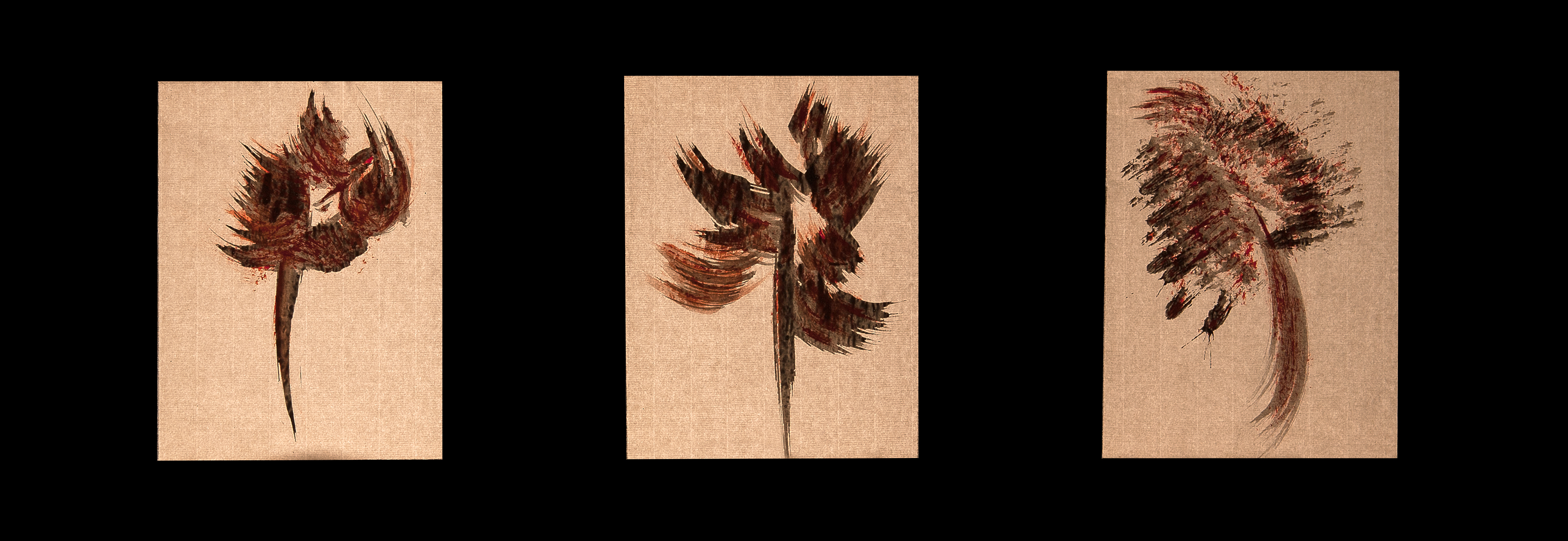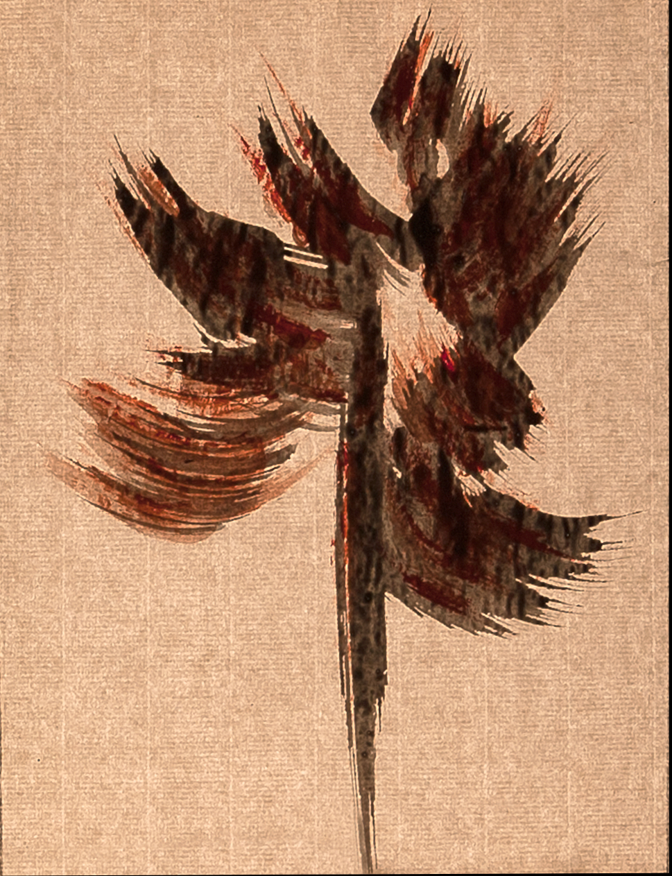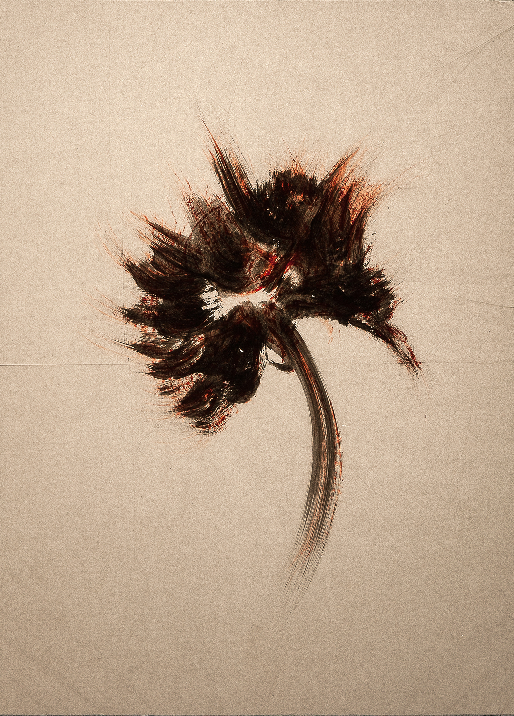 tempera nera da muro su foglio A4 di carta velina invecchiata,