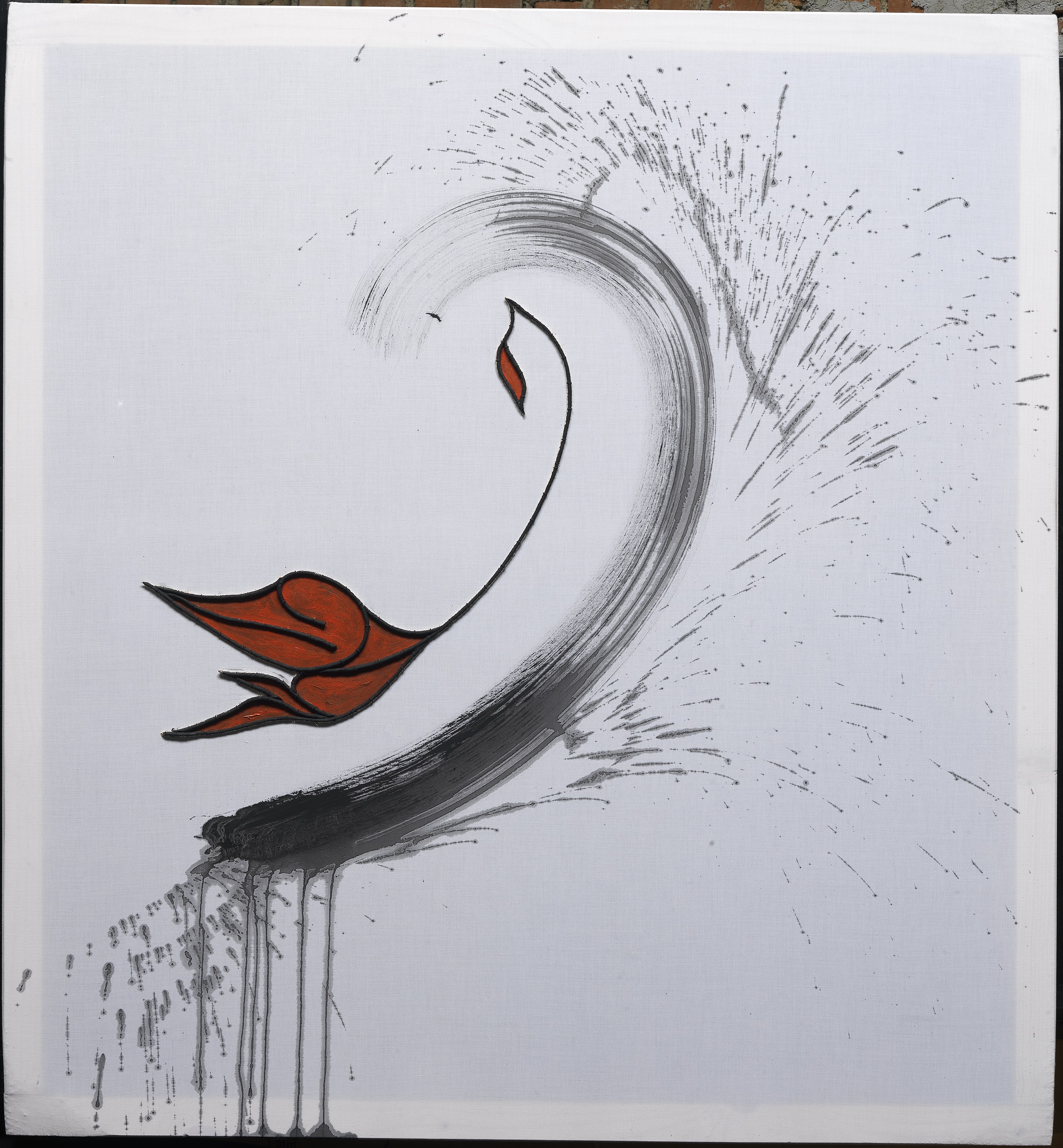 tempera da muro,acrilico,corda cucita su misto cotone