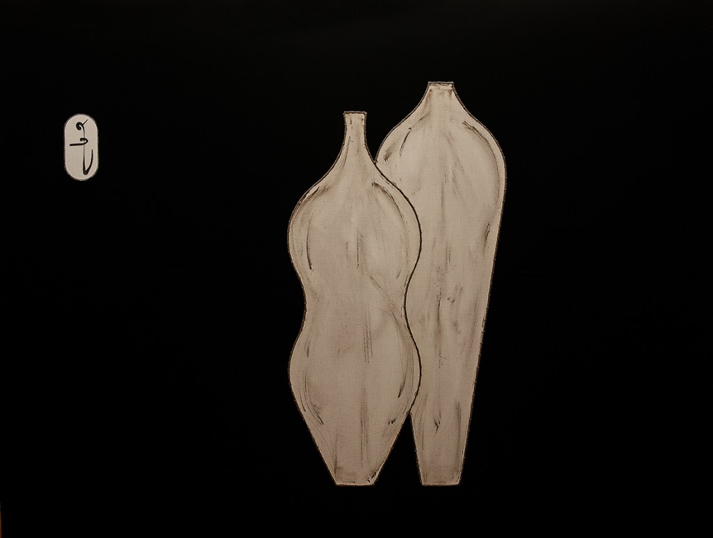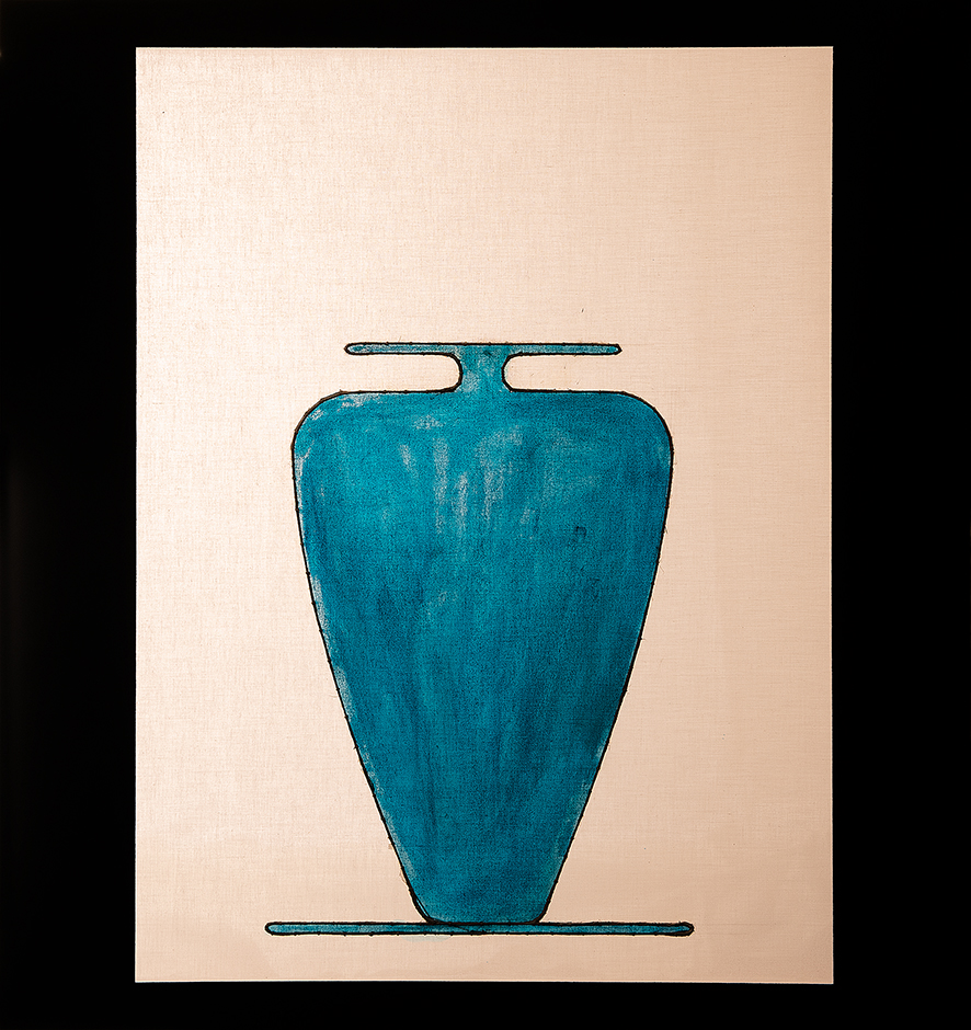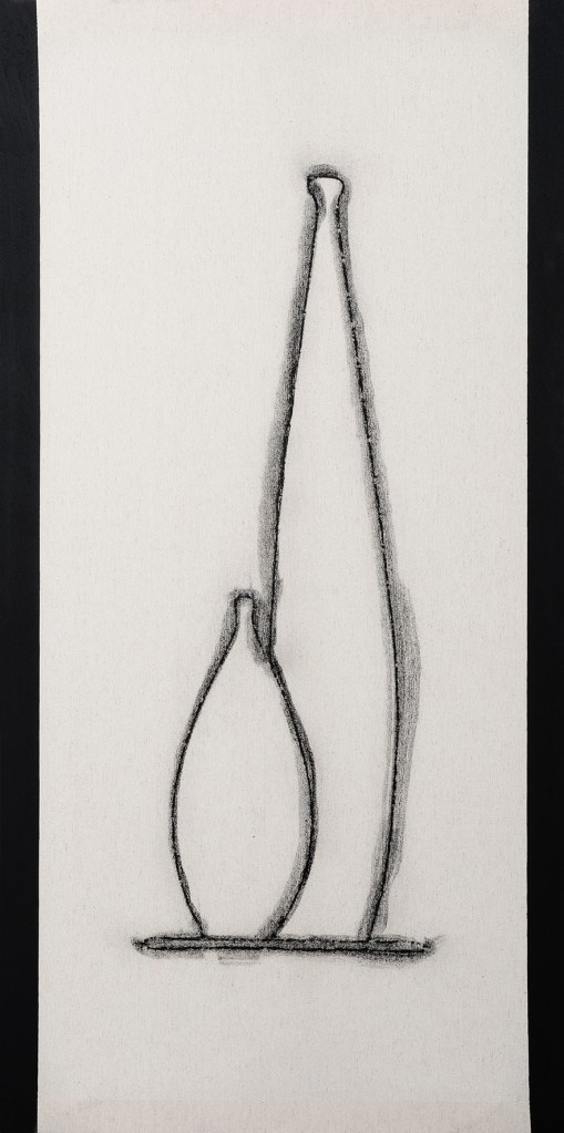 carboncino e timbro-cartiglio di Isse su lino non intelaiato