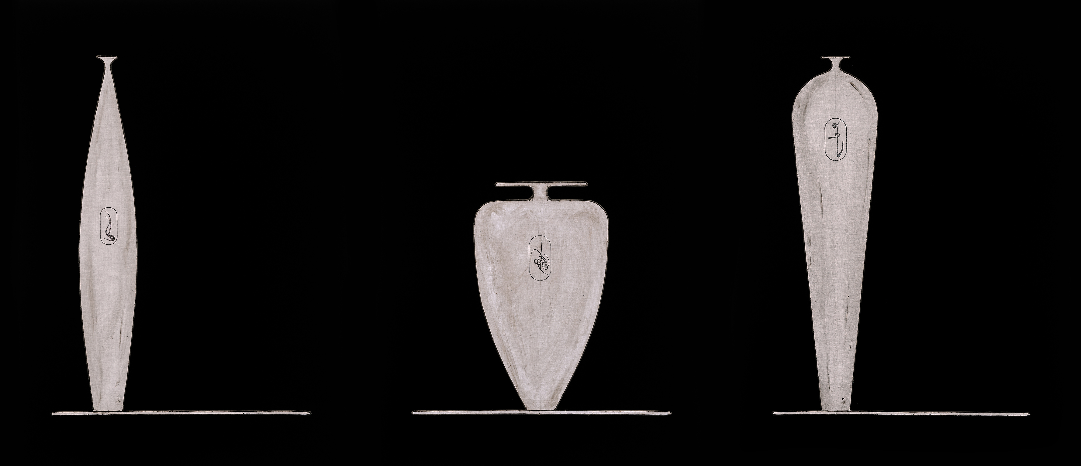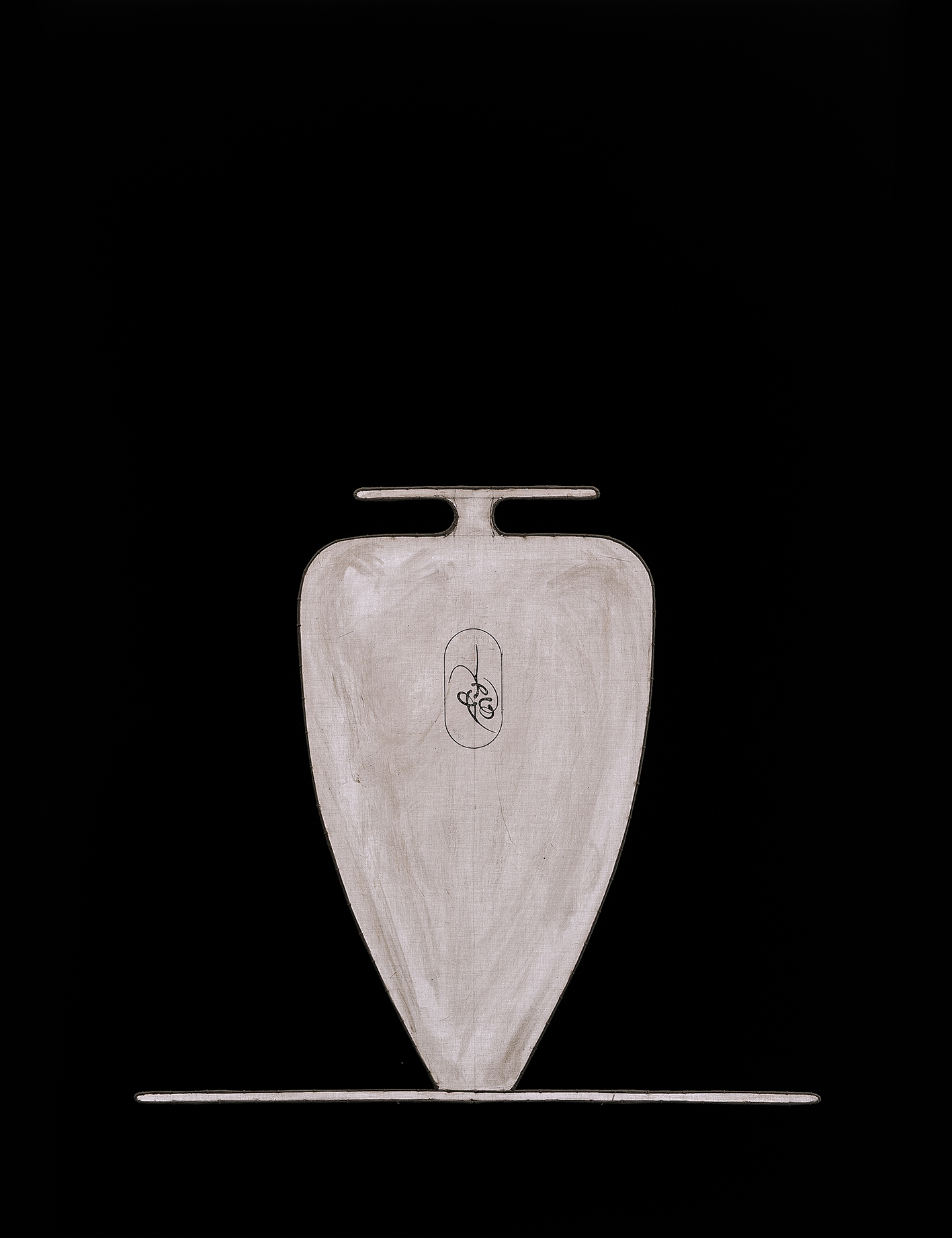 carboncino e timbro-cartiglio di Isse su lino non intelaiato