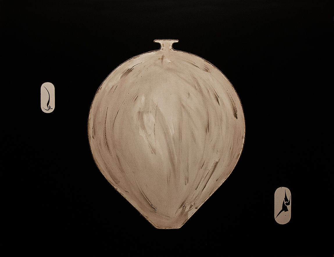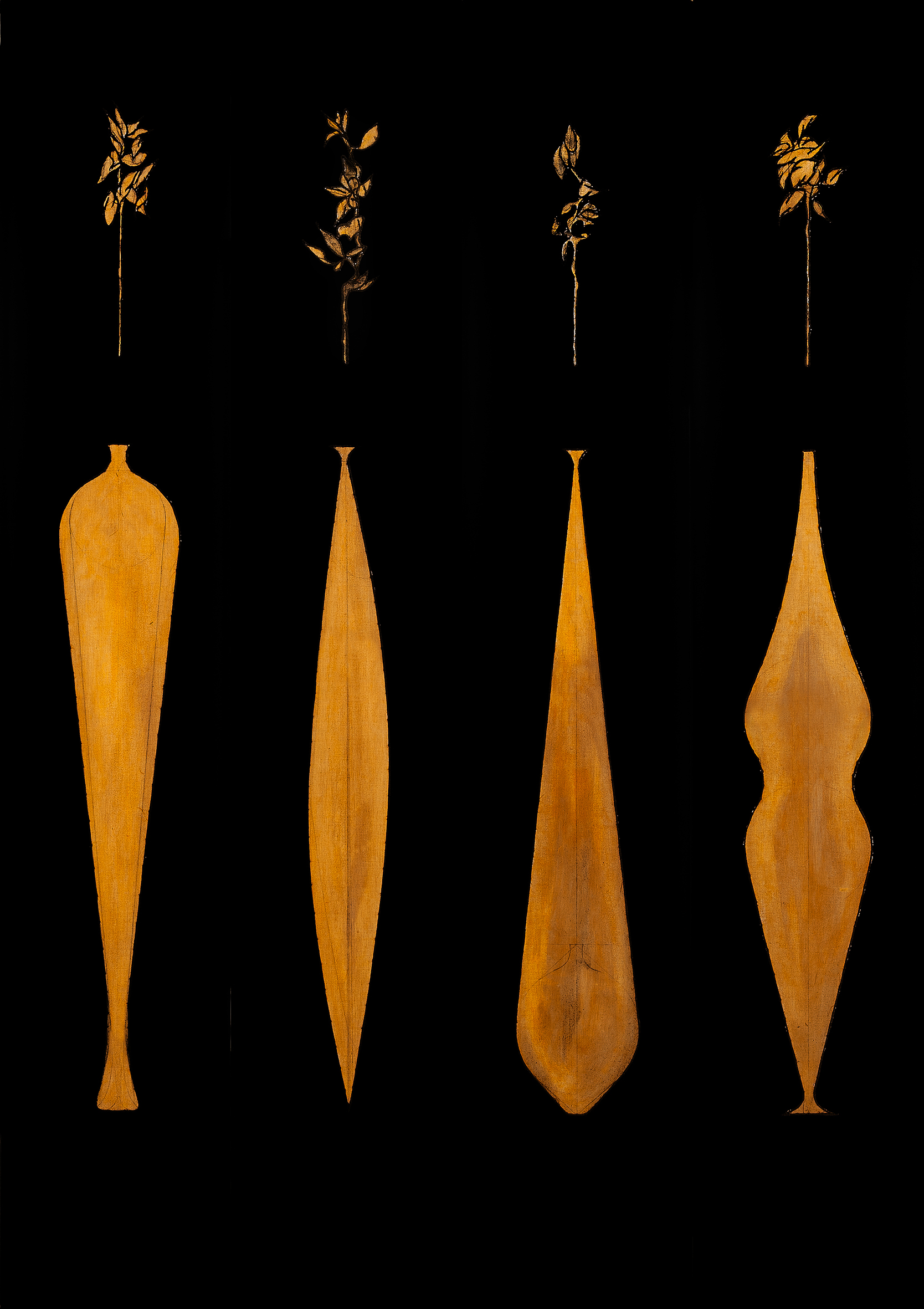 carboncino e acrilico su tela giallo-oro