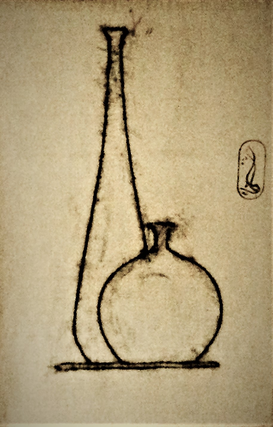carboncino e timbro-cartiglio di Isse su canapa antica non intelaiata