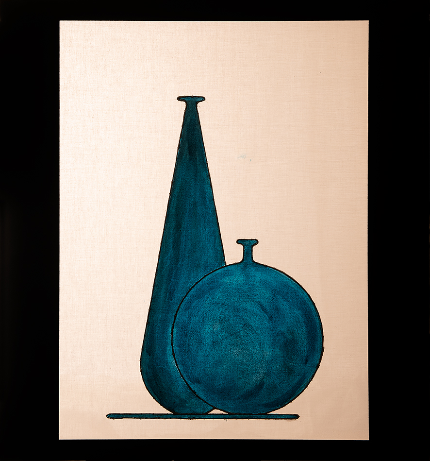 tempera da muro,blu da vetro,matita,corda cucita su misto cotone