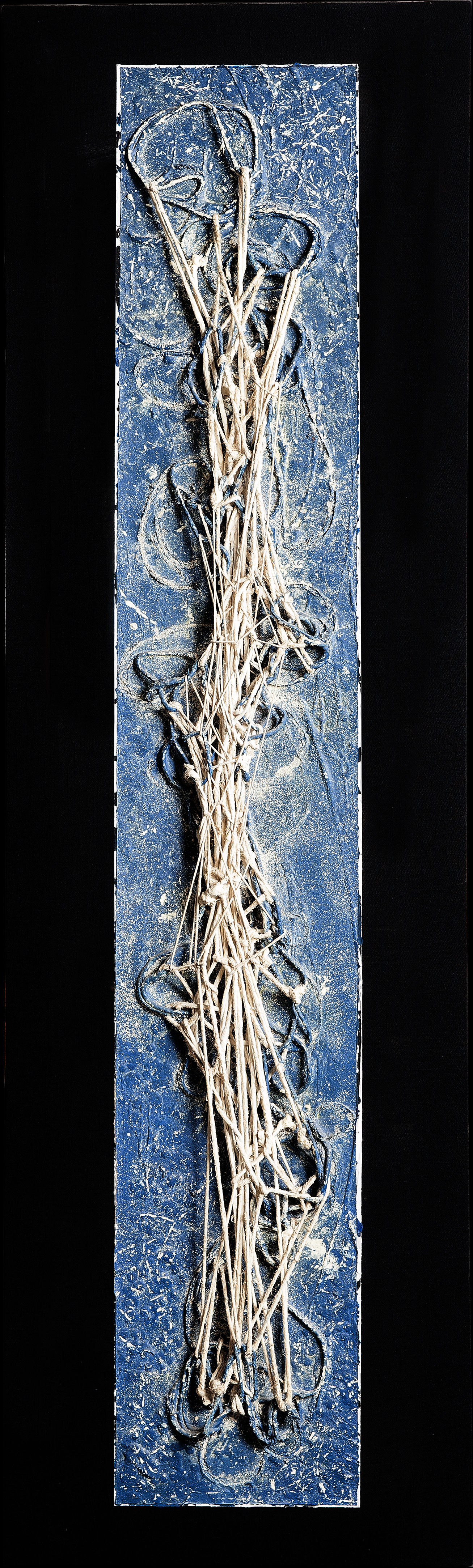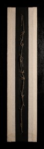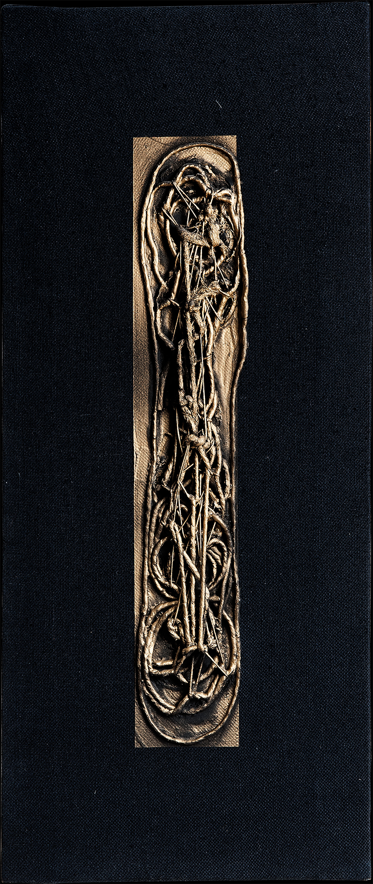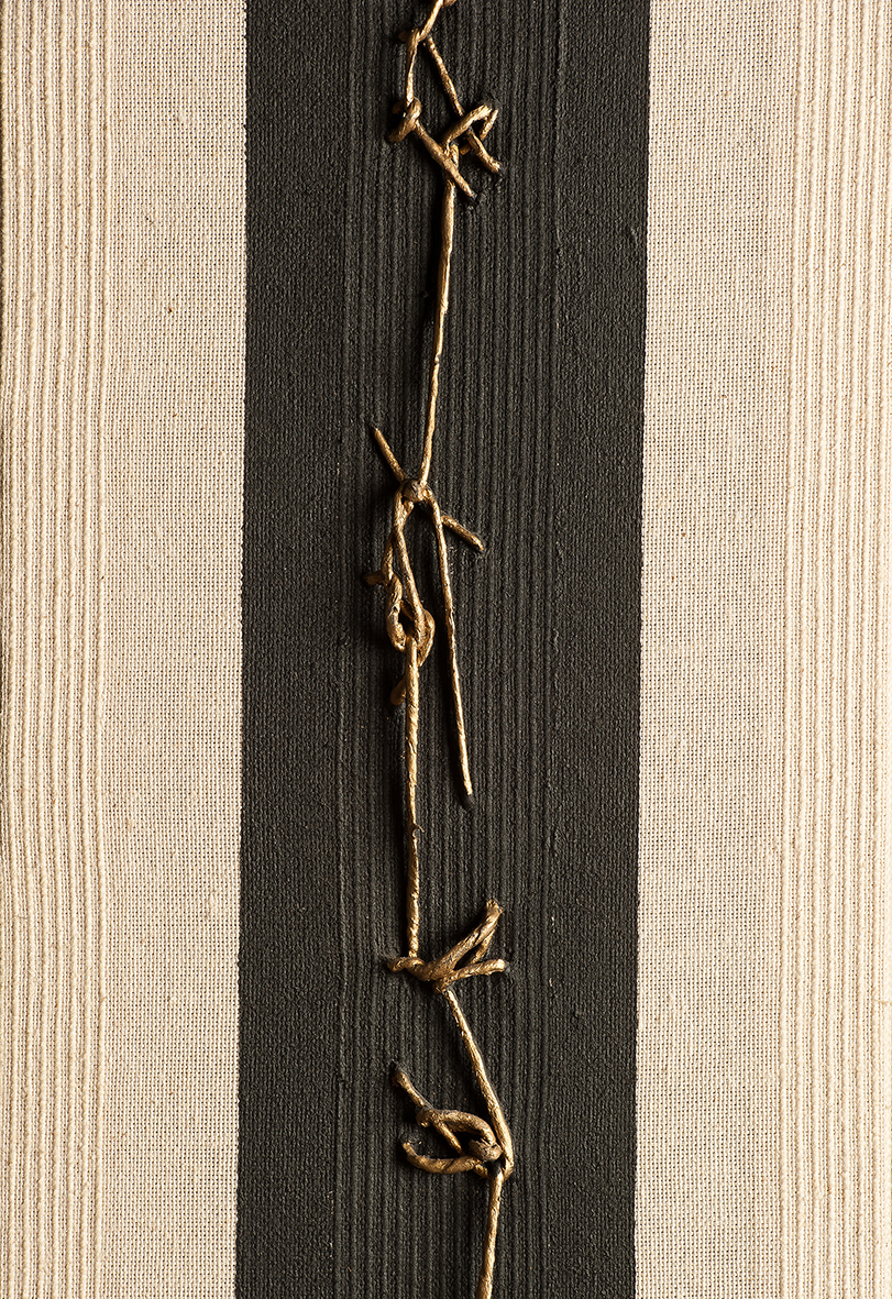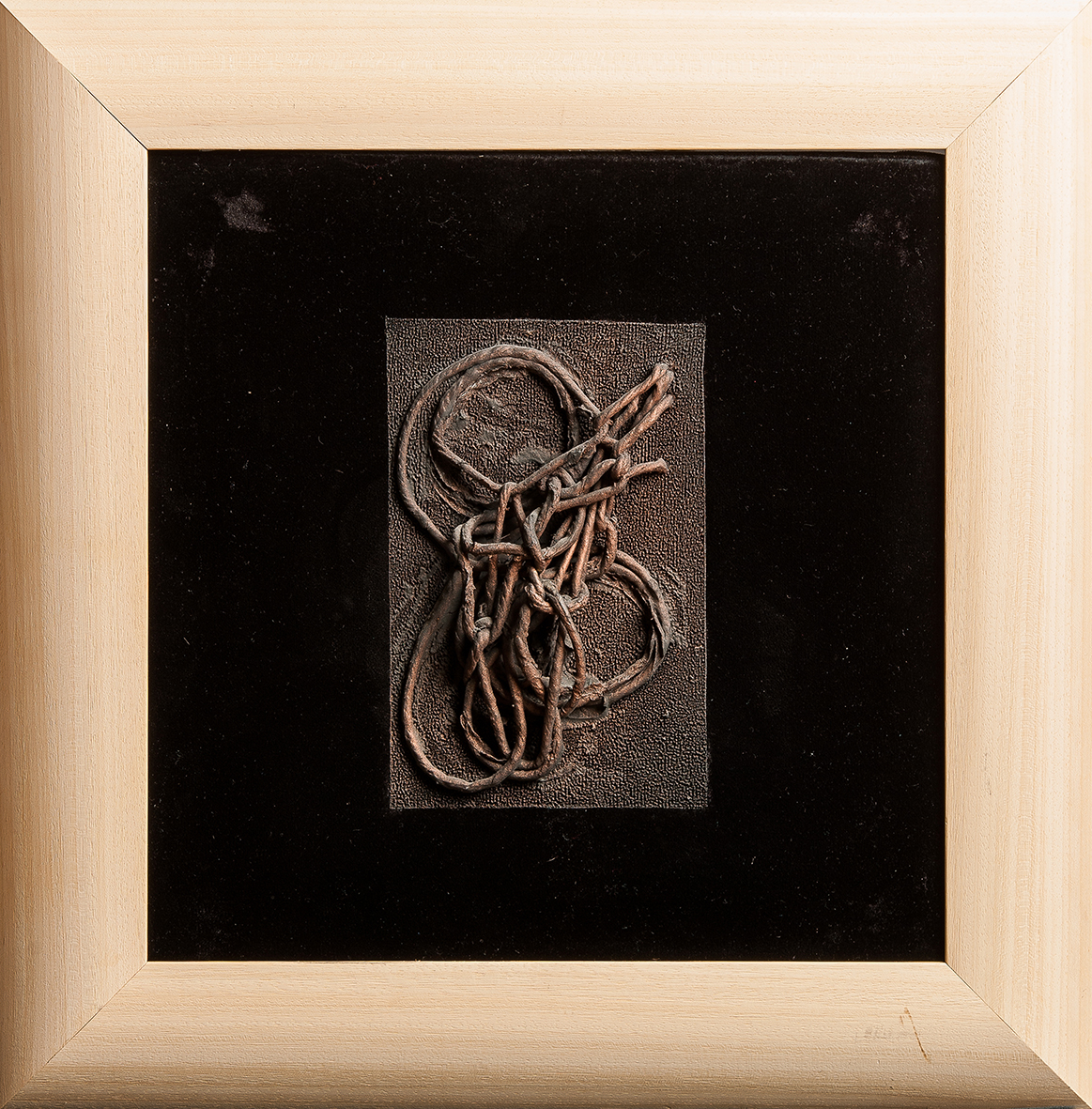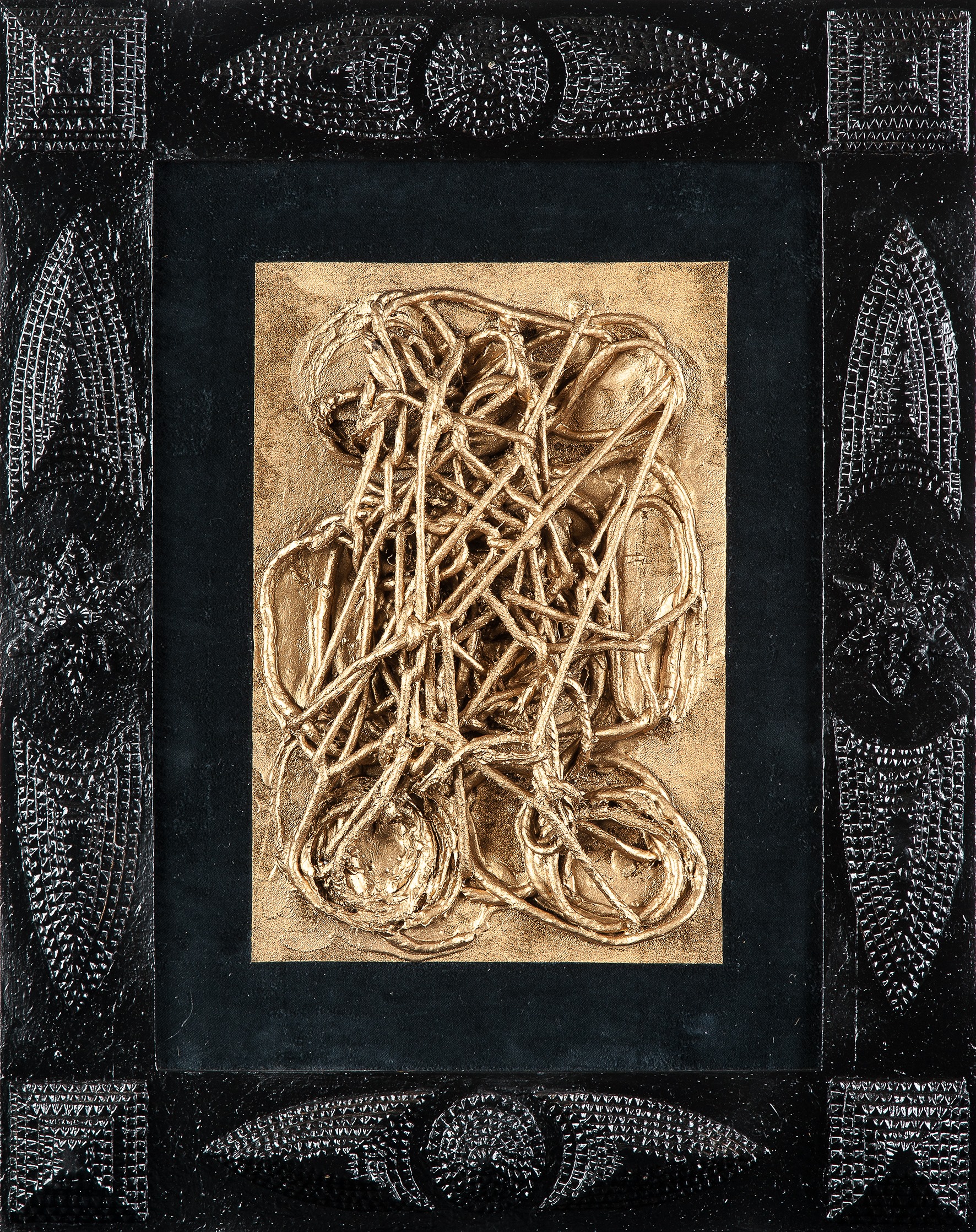 Tempera da muro,vernice metallica,corda su velluto nero