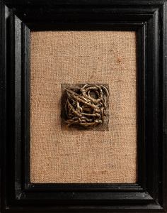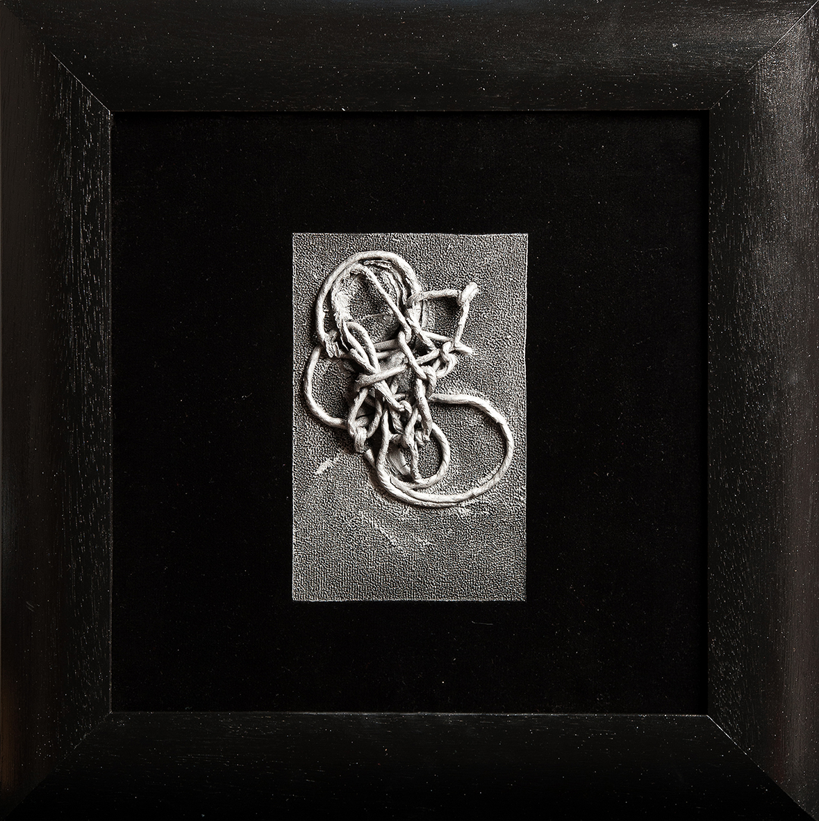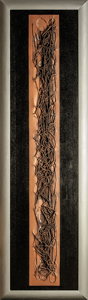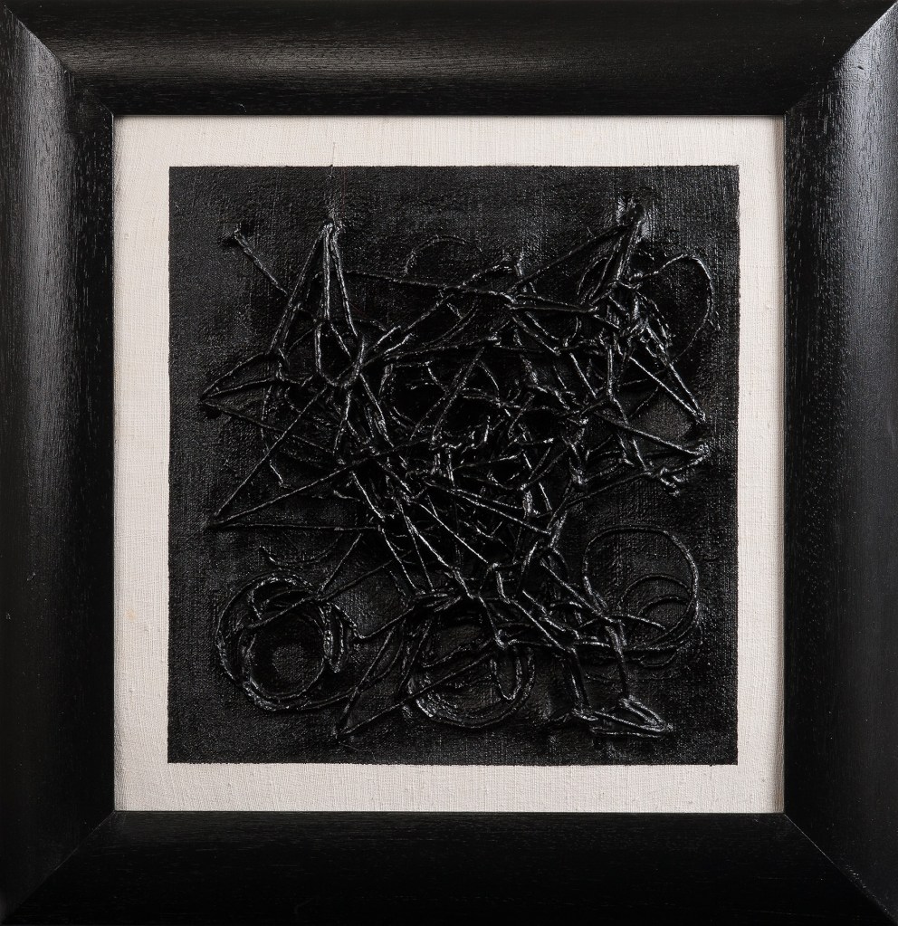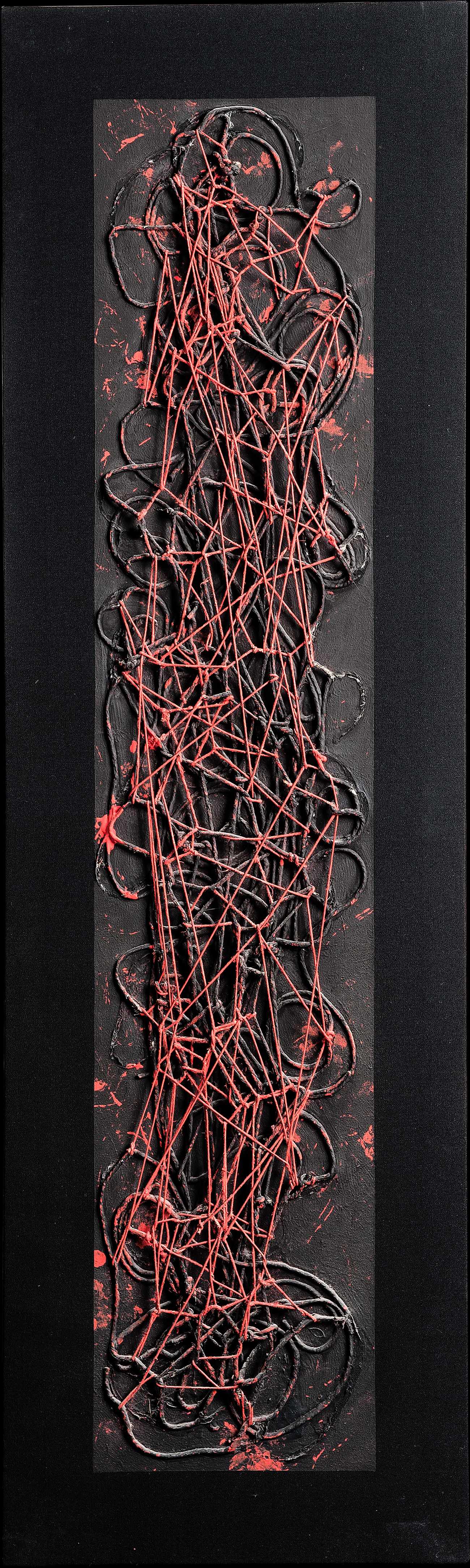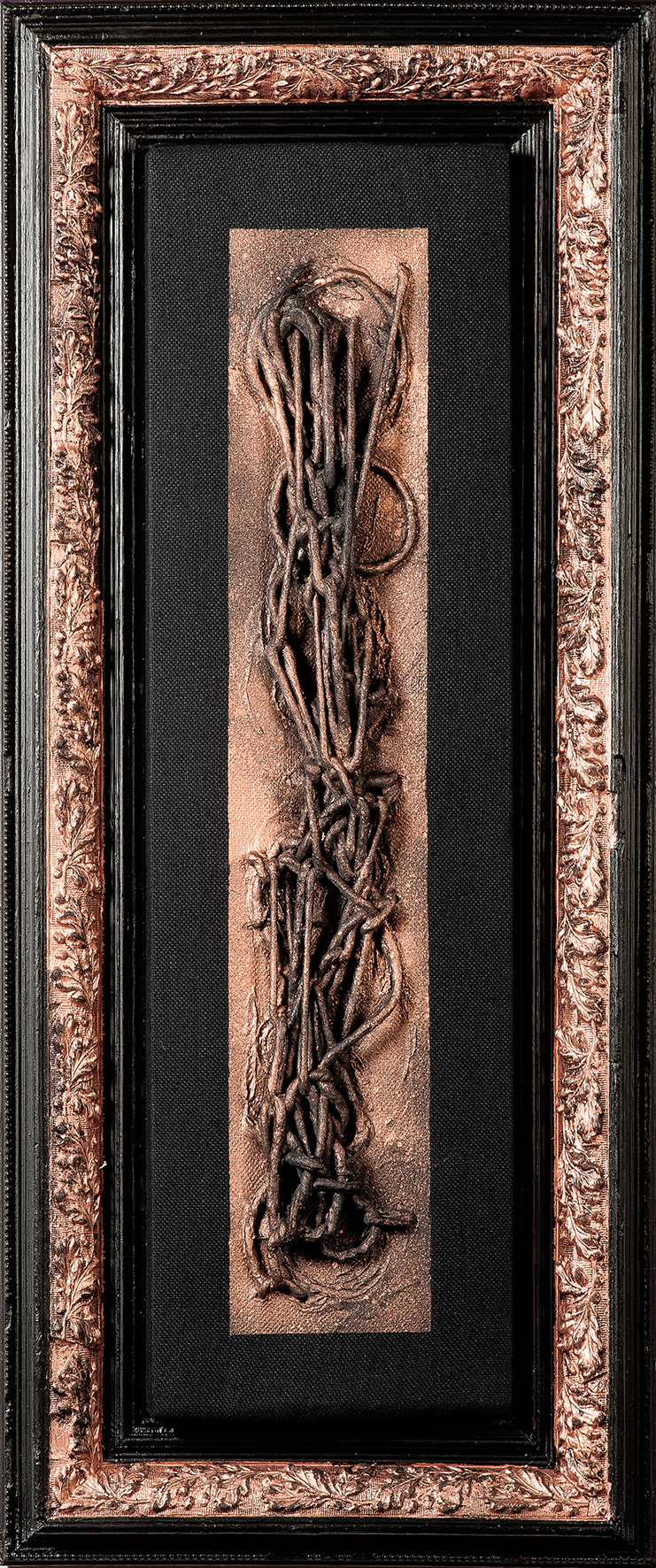 Tempera da muro,vernice metallica,corda su velluto nero