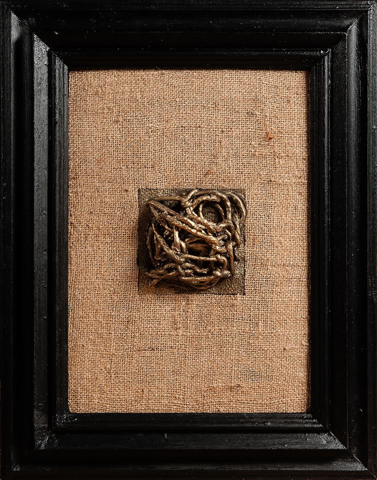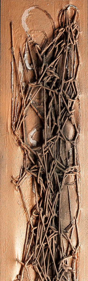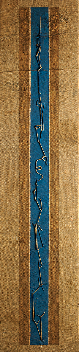 Tempera da muro,vernice metallica,corda su juta