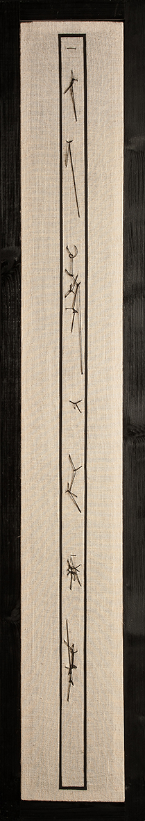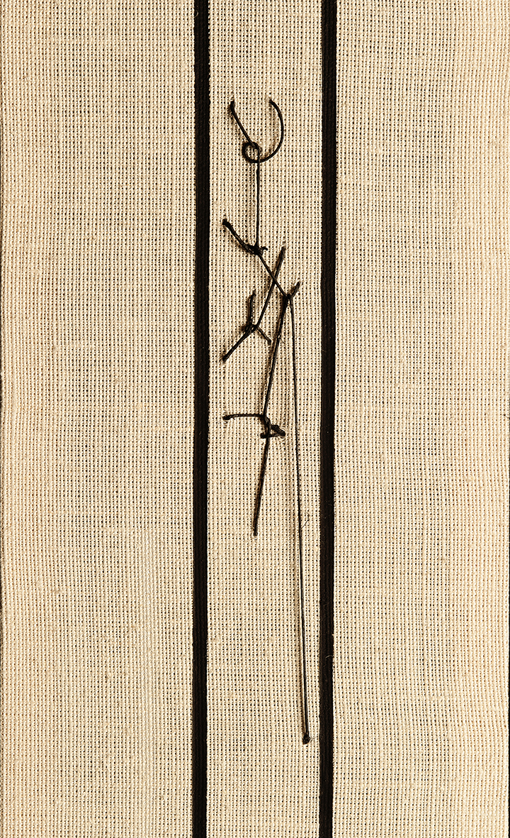 Tempera da muro,vernice,corda su antico lenzuolo