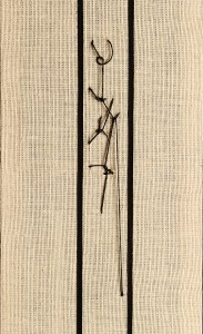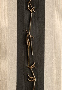 e corda cucita su spessa tela écru rigata