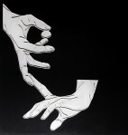 - André Che Isse “Trittico d’oracolo per Sibille nere tra capelli oro: I.Ho imparato a sedermi sulla spiaggia degli dèi; II.Il Gesto degli dèi; III.frammento amoroso” 106×100 ciascheduno opera retroilluminata 2011