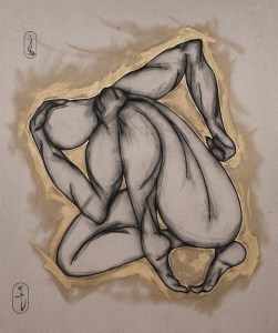 carboncino,tempera da muro,vernice metallica e timbri